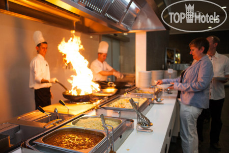 А, и есть поздний ужин ( мы приехали в 23.00 и пошли поесть - были спагетти, бургеры , овощи )