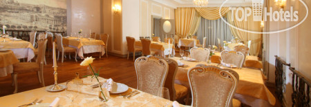 Ресторан. Небольшое помещение, есть терраса. Завтрак своеобразный: хлеба нет, только бриоши и круассаны, два котла с кашами, нарезка мясная, овощная и сырная (пару раз осетинский сыр был испорченный), кукурузные хлопья. Из горячего вкусные творожные запеканки, бекон, омлет, жаренные яица, сосиски. Выставляют творог, йогурты и актимель, в кувшинах молоко, кефир, сок. Обычно есть блины или блинчики (холодные), чай/ кофе приносят девушки по заказу. Персонал - молодые девушки, есть любезные, шустрые, вполне профессиональные, есть изощренная хамка на приготовлении кофе, вообще ждать напитки приходится подолгу даже при отсутствии большого числа посетителей.