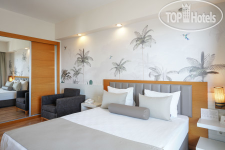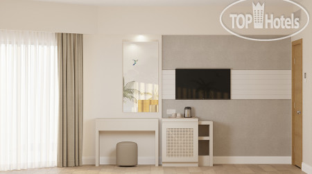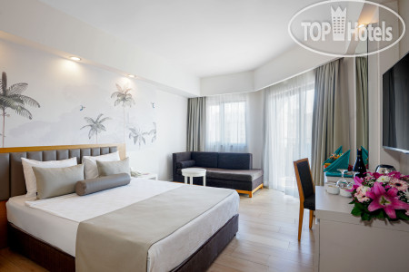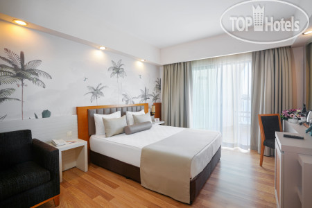 Сейчас отдыхаем семьёй из 4 человек. Семейный номер состоит из 2 комнат. Небольшие, но уютные, все что нужно есть. Огромный плюс уборке. Убирают хорошо, качественно, каждый день, постель меняют раз в 2 дня. Питание хорошее, есть все основное что обычно едим. Изысков конечно нет. Но бывают рыбный день там и красная рыба и креветки и тунец, бывает турецкая ночь там бывает баранина. В основном из мяса это индюшатина и курица, через день примерно бывает говядина - очень вкусная. Сладости фрукты всегда в достатке. Гёзлеме с разными начинками пекут на пляже, гораздо больший выбор начинок чем обычно в других отелях. Ну и главное это пляж. Он вытянутый, начинается с ресторана, можно не ходить в основной, лежаки и уже море. Море здесь чистейшее, пологий вход, песок. Пляж супер! Напитки алкогольные хорошие, пиво отличное не разбавленное как это бывает. В основном отдыхают немцы. Хотелось поблагодарить Марию, все вопросы решала, всем чем могла помогала! минус- отдыхающие много курят, но это не к отелю вопросы. До пляжа ходит электромобиль, ждать не долго. С ветерком прокатиться приятно. Но и пешком минут пять идти. Мы даже проводили эксперимент. Оставались ждать , а муж выходил пешком. Разница с отправной точкой 2-3 минуты. В итоге к пляжу мы прибывали одновременно. В море впадает речка. Так же чистая и пресная, но более холодная. Дети там тусуются, строят замки, она мелкая и они там часто плавают. Море очень теплое. Что не стоит ожидать. Это все таки не новый отель, а ренновированный. Лобби новое, но есть места где что то старое ( например в туалете двери, ковролин в коридорах), но все чисто и ухоженное. Все здесь моют и протирают. Для детей анимация хорошая, взрослым тоже есть чем заняться. Мы любим играть в бильярд, бочка есть, волейбол, дротики, теннис и т.д. одним словом рекомендую.