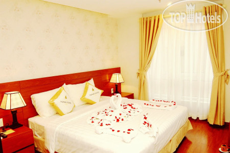 Отдыхали в Nam Hung с 22.08 по 05.09 2018г, но только сейчас собралась написать отзыв. Отель выбирали сами из того что предложил Анекстур. Расположение замечательное, находится в Европейском квартале, улица идет перпендикулярно береговой линии моря, идти до пляжа по прямой около 400 м. В отеле нет депозита, уборка проводится по утрам (мы уходили с моря где-то в 10 утра, в номере к этому времени было убрано). В номере делюкс нет балконов, но есть окно большое панорамное в пол, жили на 14 этаже-стройки рядом нет и шум машин снизу не слышен. В ванной установлена ванна и над ней душ. Работает вытяжка, за ночь все в ванной просыхало, мы там натянули бинт, а прищепки я из дома брала. Полотенец пляжных не выдают, в номере на каждого по 3 полотенца было, меняли ежедневно. Так же ежедневно докладывали зубные щетки, мыло, гель и шампунь, т/бумагу(по 2 рулона).В номере есть сейф и чайник и 2 бутылки воды ежедневно. Убирались для Азии вполне нормально. Завтраки для 3* тоже нормальные, скромно, но все пополнялось и докладовалось сразу и с улыбкой. Не было выпечки, кроме тостов и лепешек каких-то, но мне и не надо было. Фрукты какие-то не понятные нарезаны, я только ела арбуз и маракуйю(их знаю). Девушка на рецепшене очень красивая и вежливая, на прощанье мы с ней сфотались. Отель - твердая тройка, не знаю кто там что еще хочет...Приходили в чистый номер всегда, запахов нет посторонних. В наш заезд были китайцы, меня не напрягало их присутствие.