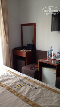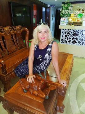 Путевку покупали через корел тревел тур.Вылет был по расписанию, обратно на 2 час. раньше. Хочется отметить получение багажа- заняло более 2 часов. Заселили раньше времени без проблем. Занимали 503 и 504 номера. Балконов нет, Окна выходили на глухую стену соседнего здания. В номерах было тихо. Море рядом,все в шаговой доступности.Есть сейф, фен, чайник и чашки,но чай и кофе не предоставляют, хотя при выборе отеля все это было прописано. Пляжное полотенце тоже надо брать на ресепшен платно. Водичку ставят каждый день маленькие бутылочки по 0,350 мм на чел. Питание так себе -однообразное. Из фруктов съедобный только арбуз. выпечки нет. Меню совершенно не рассчитано на отдых с детьми. Блюда больше подходят для китайских туристов. Чистотой "ресторан" тоже не блещет, больше похож на рабочую столовку. Есть бассейн на 16 этаже, но мы так ни разу и не искупались, вода была грязная. Уборка в номерах производилась каждый день, но после нее долго стоят лужи на полу. В общем отель только чтобы переночевать. Рядом много кафешек, обменников, магазинчиков. За алкомаркетом на 3 линии массажный салон слепых "Москва".