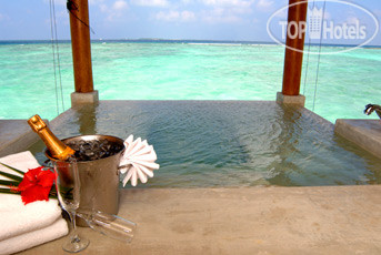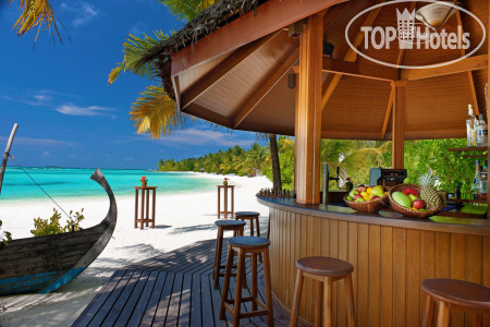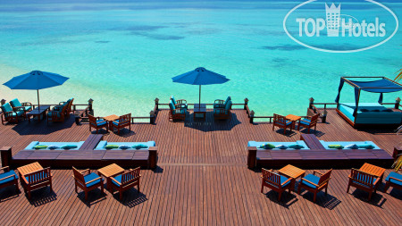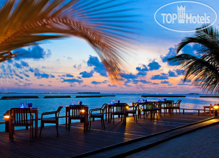 Отдых в этом отеле и на этом атоле можно назвать воистину райским! Все безупречно! Территория острова вся как райский сад -просто дендрарий тропических растений - тут и пальмы и бананы и цветы всевозможные... Виды этого рая просто завораживают! А пляж - просто чудо какое -то белый мелкий песочек, вход пологий ребенку очень удобно заходить в воду и самим приятно оставлять следы на песке и смотреть как волны смывают их. Не песок, а мука какая-то - мельчайший , приятный, белый и фото получаются сказочными! Хотелось бы особо отметить кухню- питание великолепное, разнообразное, тематическое каждый день кухня разных стран, а в субботу ужин на пляже в национальном стиле с местными песнями и плясками. Все вкусно и красиво! Молодцы вся команда поваров под руководством казаха Ирлана он всегда выходит в зал, подойдет и спросит нравится или нет. Наша девочка плохо ест и он ей по просьбе приготовил картошку фри и другое как он говорит -заказывайте все что хотите сделаю для вас. Очень любезный внимательный человек и прекрасный повар! Спасибо ему за все и его команде тоже. Хотелось бы их перечислить:Yerlan, Chamara, Dinendra, Chamika, Kalim, Anthoni, Sanyay, Muruu, Sadum, Saipul, Khokan, Kawsar, Moideev, Sampath, Danang, ivan, Sooriya, Bandula. Всем большое спасибо! Надо сказать , что весь персонал приветлив, любые вопросы решают быстро, есть пару человек русскоговорящих которые помогают с переводом всем большое спасибо! Хочется еще вернуться к ним на этот райский остров! Провожали они всей командой и долго махали вслед нашему катеру стоя в ряд на берегу - так приятно, как будто с родными людьми прощались. В общем атмосфера здесь домашняя, сердечная, природа прекрасная, вода теплая 29 градусов. Что из неприятного так это птицы! Никогда бы не подумала, что птицы могут подпортить отдых - там просто птичий базар какой-то! Постоянно кто то кричит как будто на птицефабрике то аисты (они жили на высоких деревьях над нашей виллой как раз, то вороны орут, то какие-то кулики под ногами бегают и кричат как резанные , а вот летучие лисицы только летали и махали своими кожаными крыльями моча. Вороны залетают прям в ресторан и стараются стащить из вашей тарелки еду. Мой сын отдыхал на другом острове, так говорит там только попугаи летали - это же красиво и тихо, только шум крыльев в полете. Но здесь тишины не ждите. Темнеет очень рано на ужин пойдешь светло, а обратно уже ночь в 6 часов темнота. Мы привыкли, что у нас летом до 12 светло, а здесь короткий день, ну что поделать тропики же... И вечером делать нечего даже телевизор не посмотришь - нет русских каналов совсем. Раньше во всех отелях было по 2-4 наших канала, а теперь везде отключили... Так что рано ложимся спать и рано встаем и купаться, благо что в 5 утра уже солнце высоко и жара. Погода чудесная , но будьте осторожно с солнцем - мы в первый же день сгорели, а аптеки здесь нет, так что с собой надо брать все необходимое. На рецепшене есть какие то бутики, но цены высокие. сувениры тоже лучше брать в аэропорту в дюти-фри. Влажность высокая , ну и вроде все из отрицательного перечислила, хотя это природа и сам отель за это не отвечает, а к отелю претензий нет! Обязательно вернемся на этот остров и всем рекомендую! На катере от аэропорта 10 минут время засекали, а то читала в отзывах и 20 и 5 минут... Да есть еще детский клуб небольшой можно ребенка оставить наша девочка просилась сама пару раз водили девушк