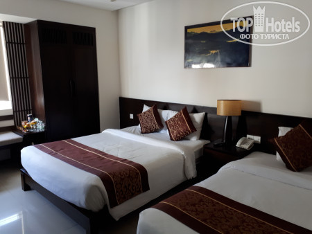 Собрались быстро, особо не выбирали. Цена была 90 на двоих, можно было и дешевле, но на первой линии. Этот на третьей и вид был на внутренний двор и это замечательно, иначе была бы шумная улица и ночной караоке бар под окном. Номер огромный мебель старенькая, но всё рабочее. Про завтраки читали, поэтому и не планировали туда ходить, а купить без питания не получилось. Для нас очень рано заканчивался, да и как то выбор совсем скудный, были два раза за всё время, один раз даже яиц не было) За то завтракали каждый день в новых местах. В отеле много вьетнамцев, для нас это не имеет никого значения, кому то возможно это важно, ну так то мы у них в гостях) Номер для проживания хорош, расположение тоже, наше любимое кафе было совсем близко, всё замечательно как всегда. Отдыхайте, если приехали отдыхать!