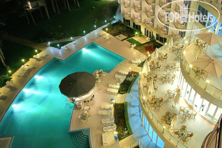 Основной бассейн хороший, вода по температуре была комфортной. В Бассейне оборудован бар, толку от него немного, потому как один бармен работает и на водном и на прибассейновом и не успевает из-за очереди "на суше". В конце отдыха пошли разговоры о ротовирусной инфекции среди отдыхающих. Мои дети купались каждый день, не заболели… В Бассейн каждый вечер выливали какой-то дезинфицирующий раствор.