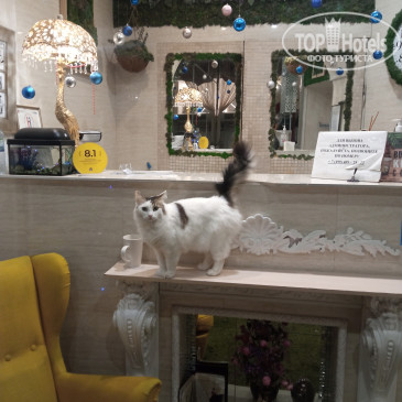 Я вошла в 6.30 утра в совершенно распахнутую гостиницу в глухом темном переулке. На ресепшен кроме кошки Анфисы никого не оказалось.Та по хозяйски везде лазила. Видевший виды грязный ковер под ногами. Кругом мусор, кружки чайные, забытые кем то видимо ещё с вечера.