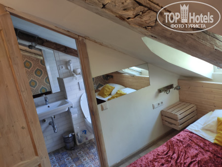 По обслуживанию никаких проблем не увидел, приехали раньше расчетного часа, но ждать заселения не пришлось. Сомнения закрались уже на этапе получения ключ-карт, когда их выдали 2 и сказали, что одна от номера, а другая от этажа. Поднявшись на 3 этаж и открыв "секретную" дверь на этаже, обнаружили, что в "предбаннике", ведущем к номерам, молотят на полную катушку 4 стиральные машины, при этом духота такая, что воздух кажется можно резать на куски. Номер оказался мансардного типа с двухспальной кроватью, духота тоже невероятная. Окно открывается только в туалете, кондиционер установлен мобильный, соответственно, ревёт как тигр, но фактически не охлаждает. Увидев все это, я решил, что нас поселили вместо стандарта в бюджет и решил вернуться на ресепшен, но там мне вежливо и доходчиво заяснили, что это и есть их трёхзвездный стандарт (боюсь, даже представить, какого размера бюджетный номер, надо было попроситься на экскурсию).