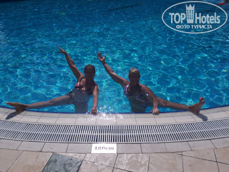 Кстати, два дня мы пытались поплавать именно в большом бассейне, но на дверях ежедневно висел замок. На третий день мы решили, что во что бы то ни стало мы попадем в этот бассейн, так как замок на входе висел вновь, но люди в нем плавали. Долго блуждая по дорожкам вокруг бассейна, мы никак не могли найти как туда попасть, но нашелся добрый человек, который нам подсказал дорогу. Итак запоминайте, чтоб пройти в большой бассейн нужно дойти до детской площадки, сзади увидите указатель в тренажерный зал, спускаетесь вниз, там сидит парень на ресепшн (мокрые полотенца там сдать можно, а вот чистые полотенца нужно брать у первого бассейна), далее мальчики направо, девочки налево. Так мы прошли в раздевалку. Далее через раздевалку и тренажёрный зал мы и попали в большой бассейн. Помимо раздевалки и душа там множество помещений сменяющие друг друга по кругу, некоторые из них в неприглядном виде, заброшенные различным хламом, некоторые закрыты. Так переодевшись, открываешь дверь exit, а там выхода нет и так по непонятному кругу, я пыталась выйти к бассейну назад – вперед несколько раз. Сразу скажу чувство не из приятных, несколько раз удавалось пройти без проблем к бассейну, но в день выезда, когда поплавали в бассейне, помылась и переоделась, я долго не могла найти выход, возможно спешила, но меня даже охватила паника, что я никогда не выйду из этого лабиринта, в общем хапнула страху.