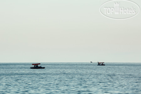 Отель новый. Даже еще идет ремонт на 1 этаже. Надеюсь, что будет питание. Так как с этим напряг. В отеле работают очень внимательные и отзывчивые люди. Чего не скажешь про арендаторов ближайшего кафе! Начальник (как показалось) орал на подчиненных в присутствии гостей. Но, так как с нервами у него, вероятно, не все в порядке, грубил и самим гостям. Мне с ребенком бросил:" Можете сюда не приезжать!" только из-за того, что мы попросили нож разрезать арбуз. Ужин в день приезда ждали 50 минут!! При этом уже сами взяли меню и, подойдя к официантам, сделали заказ. Но время ожидания это не сократило... Хорошо, что в округе полно ресторанов и столовых на любой кошелёк. Да, заявленной детской площадки пока нет. Перед отелем до моря стоят еще 5-6 отелей. Т.е. это никак не 250 м. Пляж каменистый и очень чистый с морем людей на нем. ☺Есть неприятный запах от помойки магазина Магнит. Он весьма грязный.