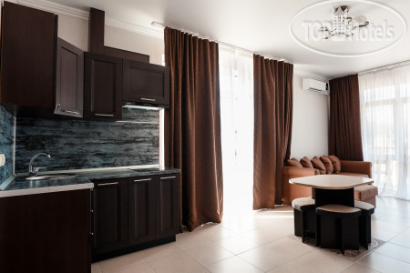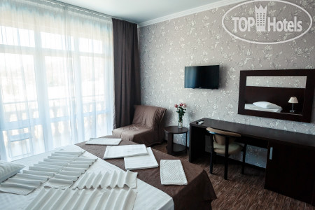 На наших югах была один раз в 2008 году, и думала, что уже никогда на них не поеду. Но жизнь, и обстановка в мире внесли свои коррективы) в итоге, выбрали данный отель и поехали составом 4 взр + 4 реб. После этого отпуска я поменяла отношение к нашим югам)) отель очень приличный! Чистота, уборка, отношение персонала, все на высоте! На первом этаже столовая, совсем недорогая, все очень вкусно, по домашнему! Вокруг 100500 торговых точек, где можно купить все что угодно. При выходе из отеля с одной стороны Магнит, с другой - 5ка. На территории отеля есть бассейн, играет музыка, по вечерам караоке. Есть бар, где делают вкусные коктейли. Несколько беседок, где можно самостоятельно с компанией пожарить шашлыки, покурить кальян. До моря идти 5 мин по торговой улочке. Мы ходили на пляж чуть левее, где есть шезлонги под навесами. Там и народу поменьше, и как то поспокойнее) на пляже также есть куча развлекух (гидроциклы, катамараны, бананы и тд) там же брали экскурсии ко скале Киселева и на квадрики) в общем и целом, отдых удался, чего я впринципе совсем не ожидала) но, благодаря отелю, моё мнение изменилось. Рекомендую!