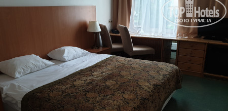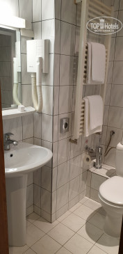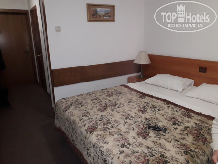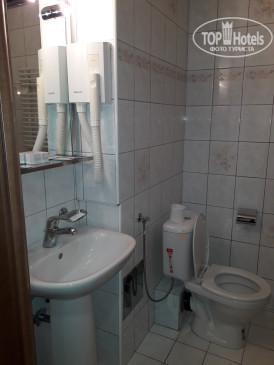 3. Улучшенный семейный номер нас вполне устроил, но не впечатлил. В номере было тепло и комфортно. Расстроило отсутствие сейфа и, особенно, чайника. И что печально, чайник невозможно взять даже в аренду, имейте это в виду. Так что селитесь в люкс или везите чайник/кипятильник с собой, чтобы попить вечером чайку в номере. Порадовали 4 бесплатные бутылки 0,5 л Святого источника в номер каждый день. Очень правильная и востребованная услуга, тем более, что вода в кулере (стоит на первом этаже каждого корпуса) имела странный привкус. Две большие (1,8м) двуспальные кровати, удобные подушки и матрасы обеспечили бы приятный сон, но, увы, ложкой дёгтя здесь стали одеяла. Одеяла были очень маленькими, такое впечатление, что их взяли с одинарной кровати и, развернув, застелили двуспальную. На одного человека впритык хватит, но на двоих совсем никак.... Не солидно получилось... (( Санузел нашего номера был оборудован для людей с ограниченными возможностями, это видно на фото.