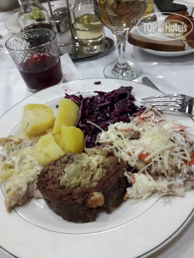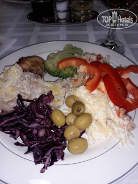 Еда вкусная, её много, всегда есть фрукты (сладкие), выпечка, пирожные (всегда вкусные, разные), на обед и ужин всегда есть мясо, рыба, 3 супа. Еда всегда чем-то отличается день от дня, поэтому не надоедает. Супы всегда разные, не отличается только один вид, бульон куриный, он есть всегда. Мясо тоже меняется - курица, свинина, говядина, баранина. Свежие овощи - перец, помидоры, огурцы даже в несезон. На полдники есть мороженое, но оно с заменителем молочного жира (пальма). Всегда есть алкаголь (во время приёма пищи в основном ресторане, 5 раз в день) алкоголя много, дадут сколько выпьете, не жалеют. Есть вино красное и белое (сухое и полусладкое), игристое (брют и полусладкое), водка, коньяк 5лет, виски, джин, вермут, ликёр.