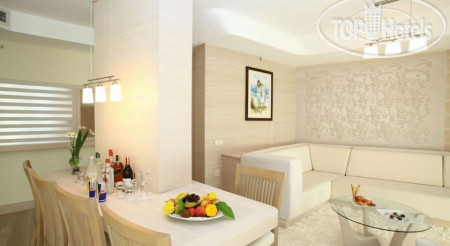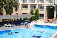 Отель понравился. Территория небольшая, но очень уютная, красивая и ухоженная. Просторный ресепшен и улыбающийся дружелюбный персонал сразу располагают а приятному отдыху. Номера в корпусах разные, у меня был номер очень уютный, мебель приличная, сантехника работала исправно. В комнате есть чайник, чай и кофе в пакетиках есть мини бар с водой, фантой и колой. Все пополнялось ежедневно. Уборка и смена полотенец ежедневно. В номерах есть балконы с парой кресел и столиком, а также сушилкой для мокрых купальников, что очень порадовало. В другом корпусе были существенные жалобы на номера, сантехнику и уборку. Мне повезло. Мой номер выходил на город и дорогу, было шумновато по ночам из-за посетителей местных кафе и работников, которые предпочитали греметь по ночам.