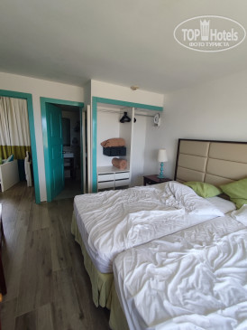 Вообще, сам отель крайне бедный, прям совсем пустой, грустный какой-то, ничего у них нет, вокруг пустыня, маленький ларек где воды можно было купить, да и то днем, бывало что после 14:00 закрыт. Номера: с этим тоже была отдельная история. Если коротко старайтесь брать 518 и плюс минус рядом, они с видом на океан и подальше от сцены. И не первый этаж. Иначе жить там в зашторенной брезентом комнате (всё видно с улицы) и не спать до 23:00 от грохочущей музыки (одинаковой каждый вечер) с анимации. Она ооооочень громкая.