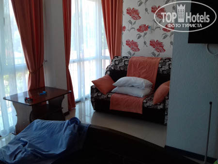 Заселились в гостиницу в сентябре,позже поняли что обманули с ценой,цену загнали большую,стандарт 2100р за номер.Поселили под крышей,в номере было 2 маленьких полотенца для рук,1 маленькое полотенце для ног на двоих,вместо одеяла простынка,в номере не было даже графина со стаканами,санузел желает быть лучшим,проблемы со сливом не всегда работал,душ подтекал,полочка у зеркала разломанная,тумбочки были ломанные,небыло стульев. Номер был весь пыльный изначально.В прохладную погоду в номере было холодно,помещение сырое.Вай фай ужасный до крыши не доходил сигнал,только ближе к центру сигнала(а это надо выйти из гостиницы вниз по лестнице,к веранде на удицу,что очень неудобно) вай фай более менее и то не всегда,то есть соединение то нету,сразу видно что на оборудовании сэкономили,Номера категорически не убирались 2 недели которые мы и находились(ведро с мусором ,полы и т д) Приходилось самим бегать,вылавливать госпожу уборщицу брать за шкирку и тыкать,чтобы убралась,стирка платная от 250р до 500р, кухни на которой самим можно готовить нету, чайник один на всю гостиницу ,фенов и подавно нет и не выдают,Столовая дорогоая,по соотношению порций,которую кладут в маленькое блюдце дабы сэкономить на лохах,если поздно придти в столовую дадут остатки супа в виде бульона, вместо заказанного пюре дадут макароны варенные даже не соленные,По поводу хозяйки когда мы спросили где поблизости сбербанк,она ответила по хамски,Когда вы ходите вы смотрите по сторонам ,читать умеете,были шокированы борзостью,видимо не зря говорят что после оплаты отношение другое.Вообщем ужас что творится в этой гостинице,даже врагу не пожелаю тут отдыхать,проход на море либо идти мимо трассы где ездят постоянно машины и много людей,либо идти по трущобам безлюдным где стоит еще сгоревший недавно отель с погибшими людьми,Зрелище для недавно приехавших туристов на позитиве,позитив сразу теряется.