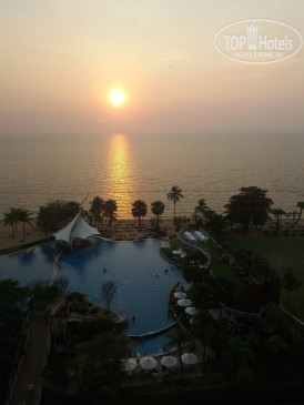 Отель рекомендую. Он находиться на въезде платной трассы между Бангкоком и Паттайей. Так что через город ехать не придется. Такси от Бангкока и отелем стоило 1500+140 бат за автомагистраль. Достопримечательности тропический сад, деревня слонов находятся не далеко, выгодно ехать от отеля, чем из города. От трассы до отеля небольшая дорога по их территории вдоль домиков и парковок. Когда мы приходили с прогулки ВСЕГДА охранник вызывал гольфкар, и он нас подвозил до входа, хотя там метров 200. Такой вот высокий сервис. И он везде. При заселении у нас попросили депозит, 200$ подошли, потом вернули их же. Его берут, т.к. Мини бар платный, как и коктейли на пляже, записывают на номер комнаты, оплата при выселении. Жили на 23 этаже, вид шикарный. Уборка каждый день, обычно после 14ч, после вас будут встречать уложенные как при заселении полотенчики. Номер большой, две кровати по 140 см, стол письменный, стул, угловой диванчик, кофейный столик, длинный комод. В коридоре номера шкаф,сейф, зонт, гладильная доска и утюг (++++). Большая круглая ванна и душевой уголок.