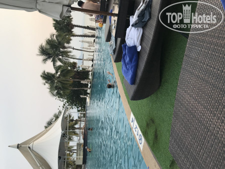 Бассейн- глубина 1,3 метра, комфортный чистый большой, места всем хватало. Есть отдельная детская зона для малышей+ детская площадка. Шезлонги рядом с морем и бассейном всегда можно было найти даже приходят к 9 утра.