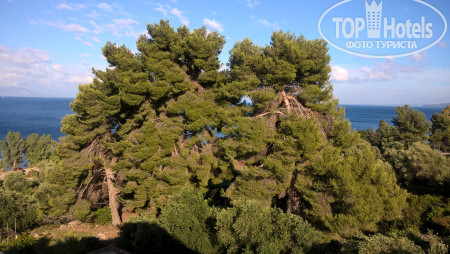 Нас заселилось 1 июня более 10 человек, все от туроператора Амботис. Автобус остановился у узенькой дорожки в гору, ведущей к апартам, напротив через дорогу лавка хозяина - Александра, по имени которого, видимо, и называется жилье. Сто метров по крутой горке - и вот, трехэтажная вилла, стоящая как бы посреди оливковой рощицы. Внешне здание очень приятное. Дальше дорога от отеля ведет к часовне и источнику Святой Параскевы