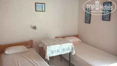 В общем, только за запах ставлю размещению три. Мебель деревянная, старенькая, но добротная. Вообще ,все напоминает какую-то милую греческую старину. Картинки из журналов в рамочках и т.д.