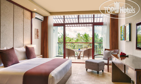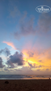 Номера: оба номера дали с видом на океан,как заявлено в ваучере, персонал гостеприимный,дружелюбный,все ланкийцы улыбаются,приветственный напиток,заселение прошло за 15 минут,чаевые принято давать носильщику и менеджеру,который провожает в номер от 300 рупий,мебель в номере старенькая,но все работает,есть фен,шампунь,кондиционер,гель,халаты,чай,кофе,чайник,вода в бутылках.Убирают номера каждый день,на мою просьбу убрать номер отреагировали быстро. Питание:очень все вкусно и разнообразно,есть острые блюда,есть обычные ,на любой вкус, фруктов было много (маракуйя,помело,гуава,папайя,бананы и другие),разнообразные соки,спрайт,фанта,кола,креветки,крабы,кальмары,мороженое,комната со сладостями просто чудесная,есть снэк-бар,можно перекусить,бар на пляже и бар в бассейне (делают очень вкусный коктейль).Из спиртного пиво,водка,ром,джин,коктейль просто сок с ромом или кубалибра. Пляж:чистый,водоросли убирают,не глубоко,волны есть всегда,но плавать можно,много вечером крабов выползает,можно посмотреть,лежаков нужно добавить. Продают кокосы 1$.На пляже подходят три брата,не бойтесь у них заказывать экскурсии,Гуна обманывает.На пляже много собак,они не кусаются.Гуляла игуана,бурундуки,колибри,даже поросята приходили.