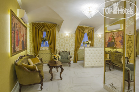 Базилики Св. Екатерины Александрийской, в шаговой доступности от отеля расположены известные достопримечательности города и метро «Невский проспект». Снаружи отель выглядит обычным и неприметным, но стоит зайти вовнутрь отеля, кажется, что зашёл в золотой дворец с картинами, это впечатляет.