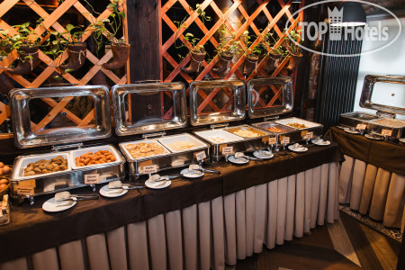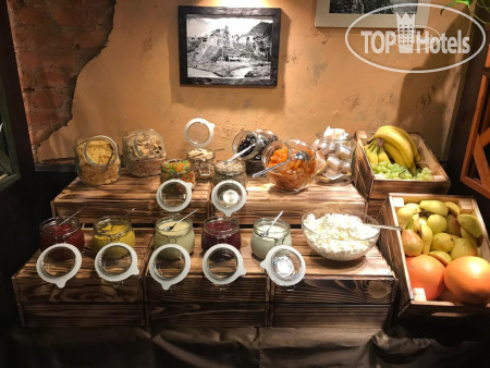 Утром спустилась на завтрак в ресторан напротив "Пхали-Хинкали": на лифте, при входе спрашивают номер комнаты. завтрак для отеля в 4* бедноват((( но это не вина отеля. Из завтрака понравился жареные тосты, сельдерей и игристое вино))) остальное-все уже остывшее или холодное от слова совсем((( спишу на то,что приходила поздно-после 10. Завтрак с 7? до 11. как то пришла после 10.30 и жареное яйцо было заветренное...попросила принести горячее и свежее, принесли)))