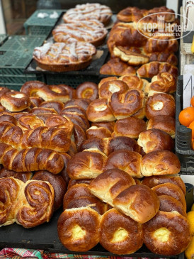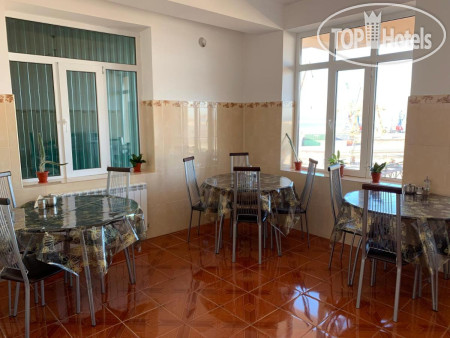 В холле, рядом с ресепшен, находится столовая/ кухня самообслуживания, что очень удобно для путешественников! Есть холодильник, три стола, которые покрыты плотной и свежей клеенкой, стулья, микроволновка, титан с кипятком и электрический чайник, кружки, ложки, ножи, посуда. На каждом столе – сахарница, прибор с салфетками и специями, на столике с микроволновкой стоит коробка с чайными пакетиками и банка растворимого кофе. Приятная неожиданность: Кофе, чай, сахар – бесплатные! В соседней от кухни комнатке расположилась раковина для мытья посуды. Имеются моющие и чистящие средства. Кухня в отеле - очень хорошая задумка, при отсутствии столовой, удобно что-то разогреть, порезать, намазать и не надо ютиться в номере, делая бутерброды «на коленях».
