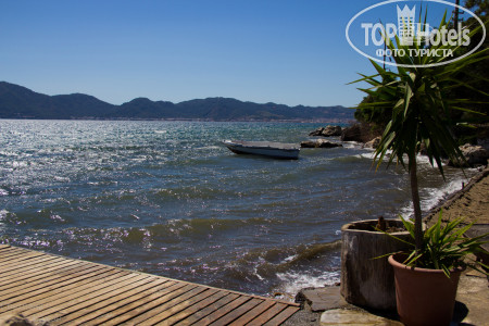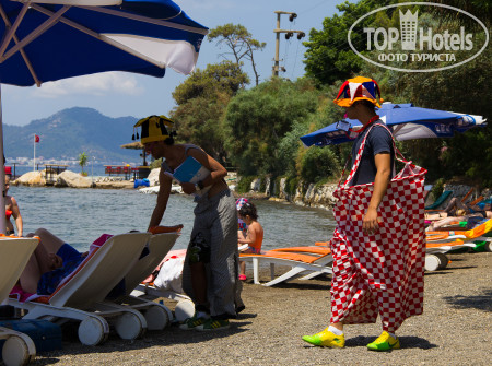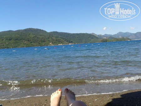 Можно очень много писать о том, насколько же грязно ВСЁ в этом отеле. И номер, и территория, и столовые приборы, и тарелочки и стаканчики, и лежаки. Об уборке хозяин отеля наверное не слышал. Так же, можно очень много слов посвятить питанию в данном отеле - оно просто никакое. Ну как, на завтрак есть яичко, на обед салатик, на ужин макарошки. Примерно всё одно и то же было все 10 дней. У мужчин на глазах были слезы, когда они впервые приходили в ресторан. Мяса тут не было. Были куриные крылышки, это максимум. Это было самое худшее питание из всех мест, где я была. Мы с собой привезли друзей, которые ни разу не были в Турции, и они сказали, что восторга нашего не понимают) Так что, если вы ВПЕРВЫЕ едете в Турцию, ни в коем случае не выбирайте этот отель! Очень обидно, на самом деле. Место очень красивое, пляж свой - довольно чистый. Лежаков всегда хватало, хоть и были те самые люди, которые в 6 утра кидают полотенчик и спят дальше до обеда. Мы пешком ходили в горы, на противоположную сторону. Там есть пещерка в горе, смотровая площадка - вид просто ошеломительный. Можно доехать туда без проблем на маршрутке, мы просто очень активные ребята. Так же, пешком можно дойти до центра Мармариса. Но я не рекомендую) Доехать на маршрутке 5 минут. Можно спокойно там гулять хоть весь день, можно искупаться на общем пляже, можно по магазинам походить. Маршрутка ездит до 23 часов. ( или 22, не помню, расписание есть на конечной остановке )