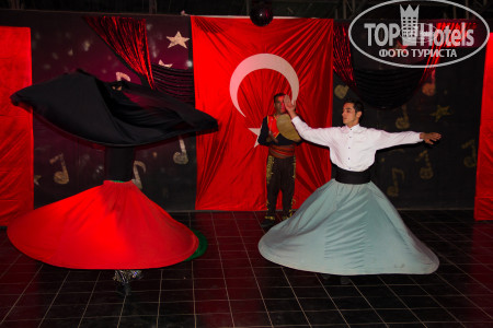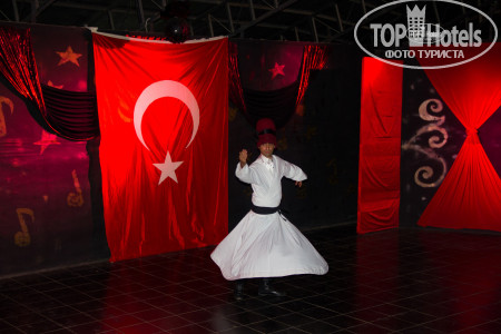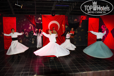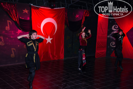 Ресторан. Ну нечего похвалить. Стандартный набор: курица, котлетки, овощи приготовленные, картошка, макароны. Бывает рыба, но скумбрия была пережаренная, тушеная речная форель и сибас ничего, но эту рыбу готовят обычно вкуснее. Сыр местный, сырые овощи, салаты, оливки, маслины - норм. Колбаса жуткая как обычно. Какие-то не вкусные сладости. Алкоголь весь ужасный. Только пиво обычный турецкий Эфес.