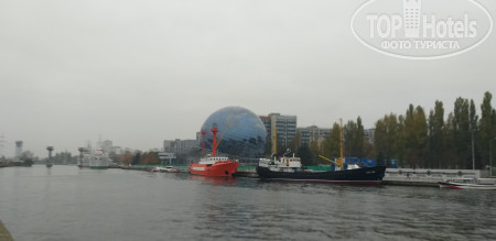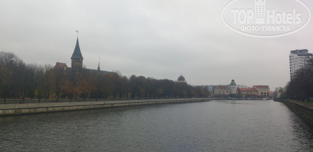 Отель расположен в удобном месте, недалеко от Южного вокзала и автовокзала (10 минут пешком), от Рыбной деревни (тоже минут 10). Смотря в какую сторону от отеля идти есть магазины Пятёрочка, Спар, Виктория. В них есть готовые блюда, брали пару раз на перекус. Недорогих кафе и столовых сетевых рядом не нашли, но в районе реки Преголя много с обеих сторон хороших ресторанов и кафе с приличным ассортиментом и видом на реку.