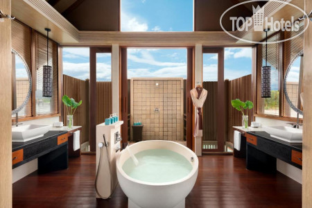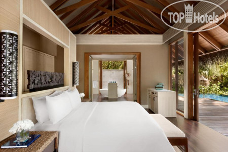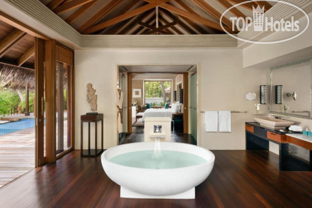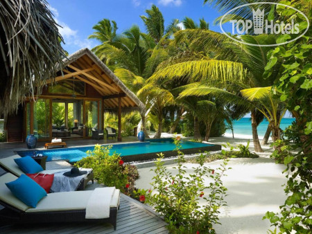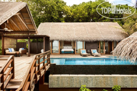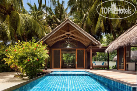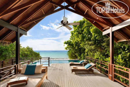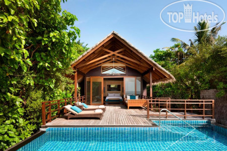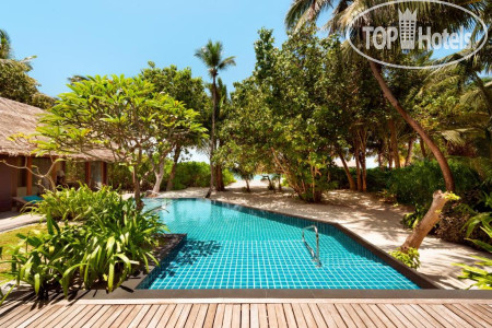 Выбирая этот отель были определенные критерии и главная это большой остров. Мы не любим повторятся и ездить в одни и теже места и хотелось в тоже время чтоб остров соответствовал нашим пожеланиям. И для нас мы здесь нашли только плюсы хотя есть и свои минусы но где их нет) Первый минус это конечно долгий трансфер но в принципе мы были не против потому что в остальном нас все устраивало. До острова добираться придется в два этапа. Внутренними авиалиниями и плюс минут 10 на скоростном катере. Но в целом дискомфорта н испытали. Нас встретили представители отеля и все организовали. Остров шикарный и просто огромный. Таких островов на Мальдивах не так уж и много учитывая что это остров отель. Есть и поля для гольфа и футбольное поле. И дорожки для бега и катания на велосипедах. К каждой вилле положены велосипеды а если лень то можно передвигаться на электро машинках. Также есть два теннисных корта уровня международной ассоциации тенниса. Можно взять уроки или просто поиграть. Можно заняться йогой или медитацией. Есть хороший спортзал. Прекрасный СПА это можно сказать такая себе СПА деревенька. Где предлагают полноценное Аюрведическое лечение что является редкостью для Мальдив. Масса других процедур. Красивые панорамные виды из процедурных кабинетах. Виды либо на сад либо на океан так как раз дикая часть острова. Там большие волны разбивающиеся о валуны. Остров очень зеленый. Очень много кокосовых пальм. Есть три природных озера. В общем остров можно смело назвать необычным. Вилла шикарная обслуживание на высоком уровне. Питание так же. {удалено модератором: несанкционированная реклама} Теперь о нюансах. На острове все виллы с личным бассейном и их соотношение к размером остова отличное. Их немного и это создает ощущение приватности. Гости не мешают друг другу. Но вот заход в воду плохой. Обязательно берите обувь для купания. Очень много осколков кораллов и с разбега в воду получится только в одном месте на острове. Плюс приливы и отливы тоже нужно учитывать. Зато риф рядом есть что посмотреть. И соседний остров видно правда с одной стороны а там где океан заход вообще ужасный. Но все это компенсирует размер острова природа и остальные плюшки. Ну тут уже кому что нужно!