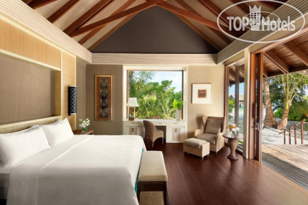 Уже много лет отдыхаем на разных островах на Мальдивах. И в этот раз нам просто захотелось чего то необычного. Есть конечно свои минусы но в целом отдых прошел отлично! Мы остались довольны! Основным минусом можно считать отсутствия пляжа с нормальным входом в море. Чтоб нормально поплавать как это в обычном понимании спокойно зайти в воду с берега можно только в одном месте ито когда прилив. Иначе можно поранится об кораллы. Поплавать с маской но аккуратно можно. Риф неплохой есть что посмотреть но он далеко не из лучших на Мальдивах. Трансфер до отеля долгий и сложный но есть один большой плюс. Вы будите пересекать экватор и вам вручат сертификаты. Это мелочь но очень приятная память). Главный плюс это то что остров очень большой. Тут даже есть три природных озера. Особая изюминка это гольф поле на 9 лунок. Для любителей гольфа будет отличное совмещение и разнообразие. Муж был очень доволен. {удалено модератором: несанкционированная реклама} Из развлечений в отеле это катание на велосипедах по острову. Велосипеды уже закреплены за вашими бунгало. Вечером живая музыка или выступают диджеи. Хороший фитнес зал. Само собой ряд экскурсий. Теннисные корты. Детский клуб. Много зелени и упор на сохранении природы на этом острове чуствуется во всем. Они даже не проводят кормление акул и скатов по той причине что это вмешательство в устройство животного мира. Сохранены все ну или почти все пальмы росшие на острове а их тут огромное количество. Они даже выращивают свои овощи для ресторанов острова. Кухня с хороши выбором. Готовят превосходно и еда на любой вкус. Единственное еще что из минусов это слабоватый для такого курорта спа цент. Но тут уже я могу и немного быть неправа но для такого уровня массажа цены завышены даже как для Мальдивского курорта. Проживали мы на водной вилле. Вилла очень большая. Сразу рядом риф. В общем все прекрасно. Мы рады что посетили этот курорт. Скорей всего сюда отдыхать повторно мы не приедем но отель нам понравился смело рекомендую!