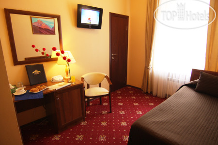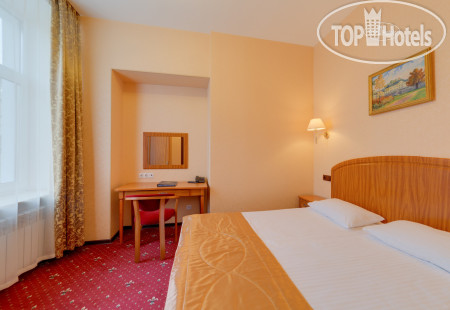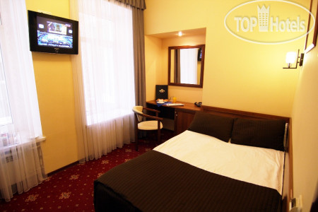 Номер во внутренний двор, поэтому шум Невского проспекта практически не был слышен. Номер просторный, оборудован всем необходимым (стол, кресло, широкая кровать, бра, кондиционер, холодильник, телевизор, фен, туалетные принадлежности, одноразовые тапочки, сейф.