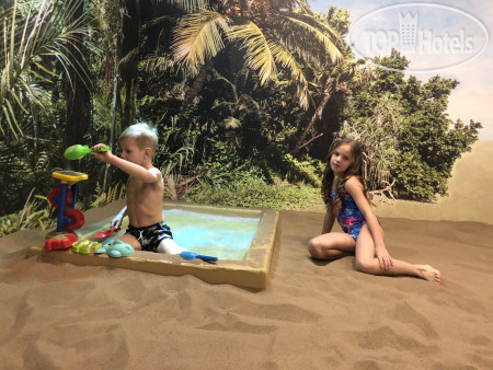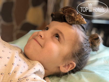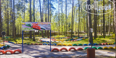 Территория у отеля достаточная для прогулок. Детская площадка хорошая, детям разных возрастов играть интересно. Трасса для катания на машинках была закрыта, т.к. при нас стали красить ограничительные кольца. Вдоль пешеходных дорожек стоят динамики, которые транслируют пение птиц. Красиво, но не натурально.
