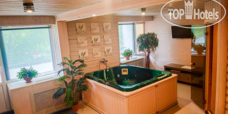 Инфракрасная сауна небольшая, рассчитана на 2-3 человек. Есть понятная инструкция по ее включению и выключению. Из сауны выходишь в душевую зону. Душ-тропический. Обычной лейки нет. С маленькими детьми это очень не удобно. Из зоны душа выходишь к зоне с раковиной и унитазом. В ванной комнате были в наличии небольшие флаконы с шампунем, гелем для душа, мыло, шапочки. Есть ступенька для детей. В сауне на потолке были замечены свисающие паутины. Напор воды в кране был слабый, как и в душе. Змеевик был горячий только в том случае, когда интенсивно используешь горячую воду.