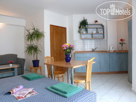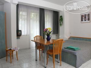 Отель расположен на тихой улочке. Нас заселили в просторный номер с гостиной зоной и миникухней, балкон выходил во внутренний дворик. Мебель не новая,но чистая,сам номер аккуратный и уютный. Единственный недостаток - маленькая душевая кабина.