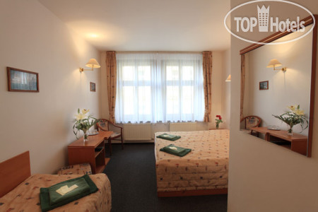 Если ехать в Прагу, только не в этот отель. Очень не рекомендую, т.к. Впечатление от него совсем неприятное. 1) Номер ( брали стандартный)- на фото выглядит довольно приемлимо и можно сказать уютно, но в реале хуже я не встречала, хотя имею представление об европейский 3-ках. Воняет хКлюч от двери... С деревянным брелоком грамм на 300 потянет, пол в номере сплошной кафель.Холодильник воняет и не работает, чтобы привести его в рабочее состояние потребовалась девушка с ресепшена, нож и немного смекалки, при этом работает он довольно шумно. Шкаф... О! Этот шкаф заслуживает уважения: место для него так и не нашли подходящего, поэтому оставили там где оставили))) в шкафу 3 пластмассовые вешалки и все! Телевизор поставили на прикрепленную гвоздями в стене досочку 30*30 см... Пульт не рабочий - 3 кнопочки вверх, вниз, громче, тише и вкл/выкл ( хотя больше и не надо, все равно из 4-х иностранных каналов смотреть нечего). Кровать хорошая, только подушки слишком большие и мягкие- бестолковые, пополам приходилось складывать. Кондиционера в номере нет, при этом на улице +29 в тени, но есть 2 окна, которые выходят на проезжую часть- ночью спать особенно " шикарно". Тумбочки в номере - их нет, только в шкафу. Зеркала в номере нет, только в ванной 40*30, в зеркало во весь рост не насмотришься. Wi-Fi в номере не ловит.В ванной нет подставок для зуб щеток, очень тесно и кабинка душевая и все в этой комнате крайне тесно. Полотенец не хватает- видимо экономят, тк после замечания на лице девушки с ресепшена никакого удивления не заметила, сказала только завтра возможно. После заезда в номер, сразу пришлось спускаться на ресепшен и просить дополнитнльные вешалки, полотенце, стакан доя зуб щеток, рабочий пульт и включить нам хлолдильник. Как вы думаете это нормально? Мы заплатили 78000 руб за неделю проживания+ перелет... Я считаю, что этот отель таких $ абсолютно не стоит.Территории у отеля нет, инфраструктуры нет, природы нет. В лифте воняет носками. Очень дискомфортно и полная бессфкусица, кажется так все дешево и старо ( лестницы и коридоры напоминают больничку, а входная дверь в столовую... Обычная белая деревянная дверь с надписью на листке А4 "Breakfast"... Ну что это такое...???((( Завтраки - однообразные, т.е не то, чтобы редко меняли ассортимент, а каждое утро все одно и то же, на своих определенных местах.Хлеб к 10 утра уже заветренный и жесткий. Но в общем с голоду не пропадете. В столовой 7 столов, после посещения предыдущими отдыхающими столы не убирают и не протирают, приходится идти за тетей и просить убрать со стола((( стулья высокие, ноги не помещаются между столом и стулом, сидеть не удобно ( при этом я невысокая и довольно компактная).Очень темно в столовой.Относительно отеля и Праги я для себя нашла огромный плюс- в Праге в отель туристы возвращаются только для ночлега! Но все таки отель оставил небольшой неприятный осадок на впечатлении от визита этого прекрасного города Праги!!!