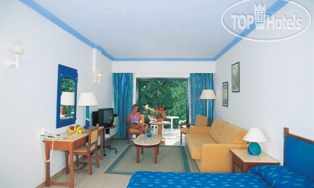 Идти на завтрак. А терраса не закрывается. Рискнули. Сходили. Багаж выжил. После пошли на рецеп и со случайно рядом находившимся то-ли слесарем, то-ли мастером чего-то, который ну ОЧЕНЬ слегка знал русский получили ключ от другого номера. Корпус Мимоза, номер 205. Кайф!!Мимо никто не ходит, Рядом апельсиновое дерево, закрытый балкон. Да, в 3 раза номер меньше по площади- а она нужна, чтобы просто спать мужу с женой? Холодильник маленький, но морозит как зверь!!! Плита не 4, а 2 комфорки-вообще не нужна. Чайник, тостер, ножи, штопор есть. Посуда любая! Муравьи мелкие-бонус от отеля! Но...тараканов не было! У нас корпус был на 14 номеров, жили 3-5. КЛАССНО!!!!! Кое-где есть веревки для сушки, но не везде. Сохнет все моментом, но на всякий случай возьмите бечевочку и пару прищепок..