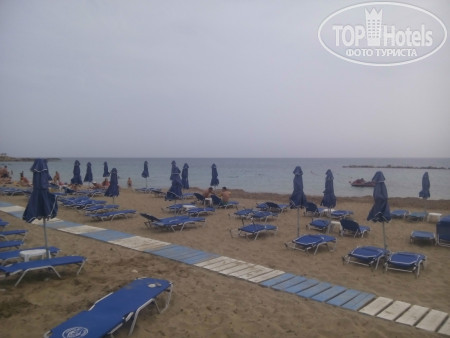 На мой взгляд-печаль печальная. И дело не в платных зонтиках-лежаках, За 2,5 евро каждое звено и брать я не собиралась. Дело в море..Водоросли и метра 1,5 при заходе в море это черно-коричневое месиво.. БРРРРР! В первый день (приехали поздно, с утра, пока любимый спал) пошла на море. На платном пляже (лежачее все платно, туалет-душ-ногомойка бесплатно) в воду зайти не смогла. ГДЕ МОЕ ЧИСТОЕ МОРЕ И ЧИСТЫЕ ПЛЯЖИ НА ОСРОВЕ КИПР? А нет 1,5-2 метра на входе противные водоросли... Пошла искать дикий пляж. От платного налево метров 300. Нашла!!!! Водоросли... но, ура!!! Есть метра 3 чистого песчаного захода! Зашла, сплавала, в удовольствие.. пошла мужа будить.. Через час вернулись, сплавали , кайфанули. и ВСЕ, БОЛЬШЕ ТАМ ЧИСТОГ О МОРЯ НЕ БЫЛО!!! В остальное время я днем, в жару, ХОДИЛА НА ПЛАТЫЙ ПЛЯЖ, просто оставляла сумку-сланцы на берегу, искала хороший заход ( а на платном везде метра 1,5 гальки, а я искала песок) находила песочек, купалась и шла в отель. А чесов в 6, на закате, вела мужа купаться с заходом именно с места песочка, который нашла!!! ( У любимого аллергия на солнце, поэтому купаться ходил на закате.. и отвечаю сразу на вопрос-в солнечные страна от ездит потому, что Я туда хочу. Ответила всем? )