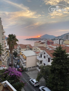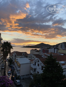 Номер на 5 этаже, просторный, светлый, с двумя балконами и видом на море, на горы, на Рафаиловичи и на закат. В отеле есть на крыше бассейн и лежаки, но мы там ни разу не были.