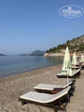 Пляж рядом,200-250 м.Но мы ходили на пляж Каменово.Там очень чисто,необыкновенно красиво.Лежак в конце июня стоил 5э,на 1 линии, в начале июля стал 7 э,