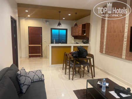 Мы жили в бунгало семьёй - супруги и трое детей. Это самое комфортное для нас размещение из всего, что только можно представить. В бунгало две просторные спальни и огромная гостинная с кухней. На кухне есть вся необходимая посуда (в том числе и для приготовления пищи), плитка,чайник, тостер, микроволновка, большой холодильник, губка, средство для мытья посуды. В ванной комнате есть всё необходимое - шампуни, гели, бальзам для волос, ватные палочки, всё регулярно пополняли. 2 больших телевизора, помимо кондиционеров есть напольный вентилятор, большая напольная сушилка для пляжных принадлежностей. Для гостей есть 2 больших зонтика в номере. Убирались ежедневно, полотенца, в том числе и пляжные меняли тоже каждый день, всё необходимое приносили по первому требованию, персонал очень вежливый, радушный. Вай-фай работал отлично. Есть веранда со столиком и удобными креслами. На территории есть небольшой бассейн, детям он очень нравился. До моря 2 минуты напрямую через дорогу и соседний отель. Пляж чистый, песочек беленький, заход пологий. За всё время нашего пребывания были большие волны, спасатели ставили красные флаги и предостерегающие таблички о течениях. Плавать нам не удалось, но как и все, вдоволь напрыгались в волнах. Ката Ной место достаточно уединенное, для спокойного отдыха. Рядом большой отель, два мини- маркета, с десяток ресторанчиков, массажные салоны, несколько сувенирных лавочек и аптека. Если пройти минут 15 по дороге направо, будет городок с кучей отелей и магазинчиков - вечером мы несколько раз ходили туда за фруктами и сувенирами. За 200 бат туда можно доехать на тук-туке, на такси еще дешевле.