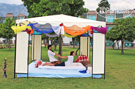 Были в отеле с друзьями (2 пары) очень уютная территория, на территории 1 ресторан, снек бар около бассеина и лобби бар. Много мест где отдохнуть , сад, сад у бассеина где полно лежаков. Номер попросили с видом на горы 4 этаж, пушка вид, петухи поют под окнами..но нам все понравилось. Номер свежий, сантехника отличная, шампунь, гель пополняли, полотенца меняли. Про уборку не скажу как часто не следили)). Еда вкусная с душой, но мяса очень мало, большой выбор фруктов..но вот турецких сладостей не хватило одни бисквиты пропитанные молоком. Бар в отеле по напиткам норм, водка, узо, джин, красное,белое вино (убойное). Делают коктели с фантой, спрайтом, пиво тоже есть. До пляжа 7-10 минут ходьбы не напрегает, можно на шатле но не пользовались. Пляж песок заход плавный коралки не требуются, рядом есть пирс от 5* можно поразвлекаться ))) На пляже есть бар красное,белое вино (убойное), пиво. Отель очень уютный, спокойный в основном Русские, и страны бывшего СНГ. Есть анимация дартс, зумба, вечером дискотека. В основном все времяпроводили вне отеля только завтракали и ужинали. Рядом есть каньён рекомендую к посещению , ездили на морскую прогулку караблик МЕГА СТАР, ездили в Кемер на дикий пляж. В целом отель оправдал ожидания, даже бы вернулась. Единственный минус это питания а именно мало мясных блюд (мужчины у нас чуть грустные были) но это не беда, есть фасоль, нут, много печёных овощей белка добрать можно. Рядом с отелем есть Султан тревел там брали все экскурсии. Спасибо администрации отеля за хороший сервис!!!! Остались у нас в сердечке.