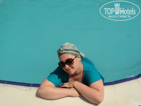 Бассейн. Здесь, в отличие от моря, шезлонгов хватает всем, они с матрасами. Бассейн чистый, теплый, есть детский бассейн глубиной 40 см. Одна горка, которая работает 2 раза в день по 2 часа с 10-12, с 14-16.