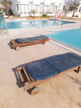 Я знала куда ехала, поэтому шока у меня не было. Но все недостатки этого отеля покрывает очень дружелюбный персонал, который всегда приходит на помощь, идет навстречу. Хоть и английский, а уж тем более русский хромают. В отеле есть сотрудник Саид. Он русский понимает, говорит неплохо. В общем то можно найти выход. Есть переводчик, интернет в помощь. Интернет только на ресепшене. Кстати, на ресепшене нет кондиционера, поэтому долго там не посидишь. Они ставят большие вентиляторы, но они, сами понимаете, не тот эффект создают. Приехала после часа дня, заселили сразу. В номере был кондиционер очень странный, но работал, телевизор с одним русским каналом ТНТ и маленький рабочий холодильник. Я привезла с собой тряпочку и чистящее средство. Сама все протерла. Комаров не было, тараканов, клопов тоже. Туалет с душем, вполне приличные. Вода была всегда. Белье старое, но чистое. На одеялах нет пододеяльника, имейте это в виду. Но я вообще не укрывалась. Полотенце маленькое уже весело, большое и пляжное попросила у Саида. От уборки, смены белья и полотенец отказалась сама. Так как за неделю я одна столько ненабордачила. Сейфа в номере нет, но есть на ресепшене. Столовая тоже без кондея. Опять же ставят большие вентиляторы. Я приобрела пластиковый контейнер накладывала в столовой и ела в комнате под кондеем. Так как на улице было +40, а в столовой еще больше. Брала с собой термокружку. Очень выручает в этом отеле. Брала с собой чай. Хотя в столовой на завтрак чай и кофе есть. Еды действительно немного. Выбор небольшой. 2-3 гарнира, один суп, салат и одно мясное или рыбное блюдо, которое будет выдавать повар строго по одному кусочку. Скажу честно, мне повар всегда давал побольше)) Я не просила, он просто видел, что я мало ем и думал, что я стесняюсь спросить. Яйцо на завтрак спрашивайте, они их почему то прячут. И только одно в одни руки. Мне еда показалась как везде в отелях. Отдыхала в марте в 5*. Там единственное выбора больше, положить больше можно. На что-то супер-пупер не рассчитываете. Еда съедобная, есть захотите, съедите. В баре была только водка местная, спрайт и фанта тоже местные из больших бутылок. Есть маленькие баночки, они платные (1 доллар 2 банки). Бармен Миша варит прекрасный кофе в турке. Все напитки в пластиковых стаканчиках. Я много не пила, но мне ни разу не отказали в коктейле, один раз налили целый стакан чистой водки ))) я ее потом в номере с покупной колой мешала. Алкомаркет недалеко, 5-10 мин.ходьбы. на 10 долларов можно купить и крепкий алкоголь и винишко. Бар работает до ночи, если народ есть, бармену самому интересно общаться. В отеле очень много местных. Будьте к этому готовы. Были туристы с Грузии, Армении, Киргизии, Узбекистан. Очень хорошо общались. На пляж автобус в 9 утра туда и в 14 обратно. Очень классное дно. Можно без каралок, в основном песок. Лежаков всегда хватало. Они под плотным навесом, не сгоришь. Но если позагорать надо, то есть и такие, которые открыты. Море шикарное. Подкармливали рыбок хлебом, они прямо вокруг тебя начинают стайками плавать. Так что даже маска не нужна) В целом, я очень довольна своим отдыхом. За такие деньги, это очень хороший отдых получился. Спасибо всем работникам отеля. Если снова все так сложится, то я еще раз приеду.