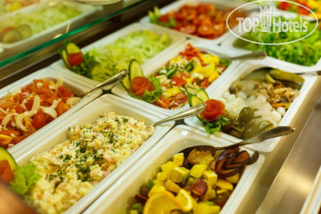 В ресторане всем указывают их места, так как людей было мало, мы смогли выбрать приглянувшийся нам столик в торце второго зала с видом на лесную зону. Завтраки шведский стол, а ужины по меню, которое мы выбирали из нескольких представленных. Какой только рыбы я ни ела – и треска, и карп, и форель, и судак, в разных вариантах приготовления. Удивило то, что десерты никогда не соответствовали заявленным в предварительном меню. В ресторане работают быстро и внимательны к гостям.